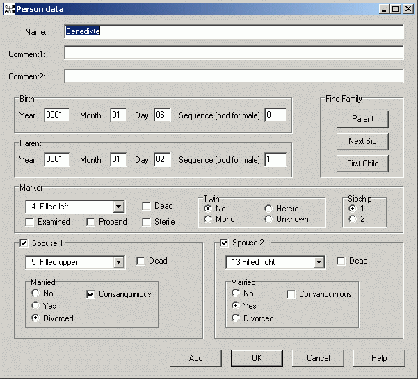 If information about the spouses is available, a marker can be defined together with martial status, but this is completely optional. You enable the spouse marker by checking either Spouse 1 or Spouse 2. When you have done that you can select what marker should be used for this person, just as you do for the family person.